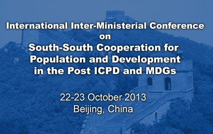 In this context, PPD in partnership with the National Health and Family Planning Commission of the People's Republic of China is announcing the 2013 International Inter-Ministerial Conference with the theme “ South-South Cooperation in the Post ICPD and MDGs ” to be held in China from 22 - 23 October, 2013 . The Goal of the International Inter-Ministerial conference is to galvanize commitments for SSC towards the ICPD PoA beyond 2014 and MDGs beyond 2015 for Reproductive Health, Population and Development.